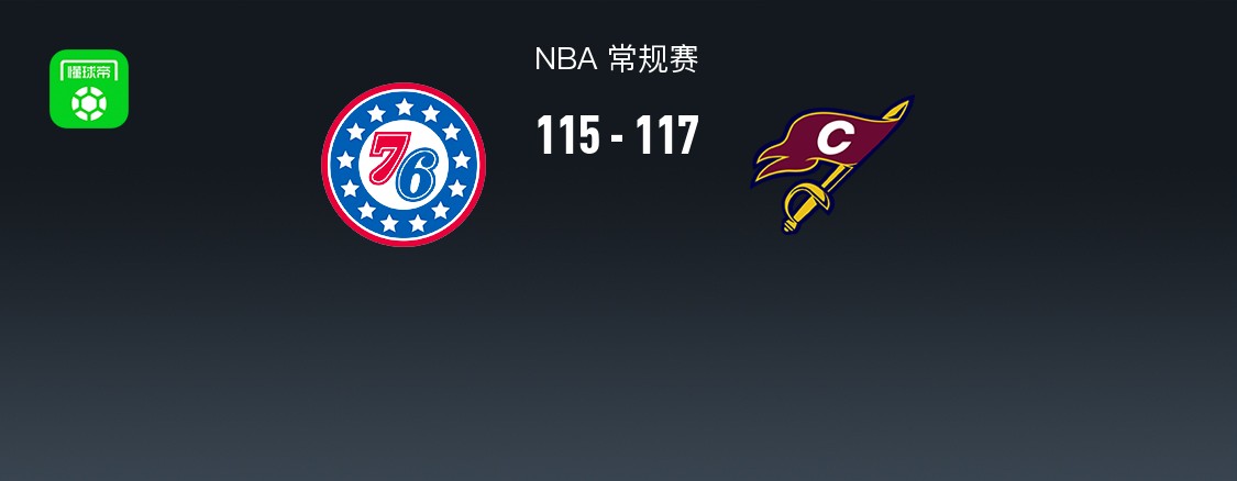 第四节76人马克西拿下8分,骑士杰伦-泰森拿下8分,最终76人115-117不敌骑士